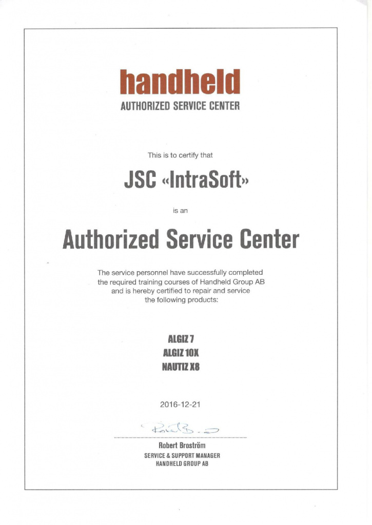 Our service center is officially authorized by HandHeld Group AB for the entire product line and provides a full range of service warranty and post-warranty service.